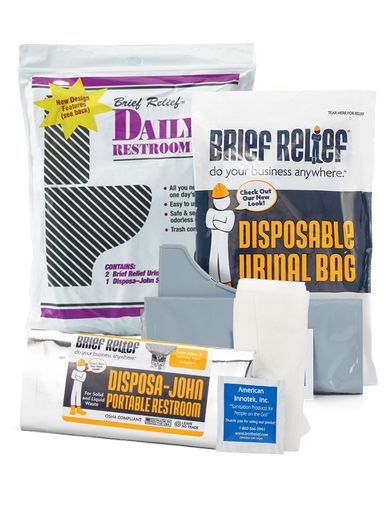 The Brief Relief™ brand Disposa-John™ pouch is a complete, mobile, private lavatory for people on the go.
