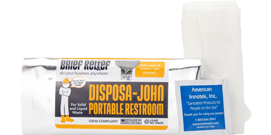 The Brief Relief™ brand Disposa-John™ pouch is a complete, mobile, private lavatory for people on the go.